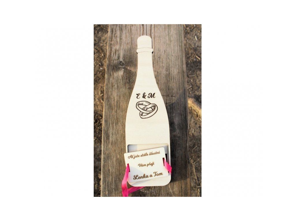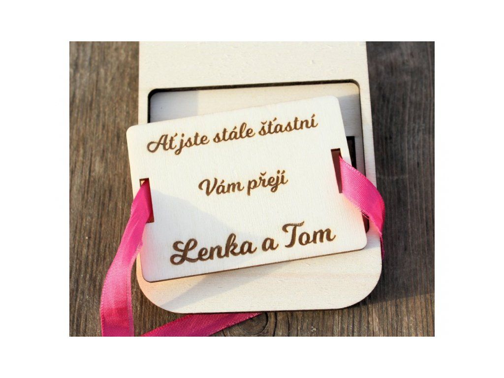 Luxusní "obálka" pro novomanžele umožňuje darovat peníze originální cestou. Bankovky se umístí pod středový odnímatelný kryt, který se pak zaváže stužkou. Dodáváme bez stužky.