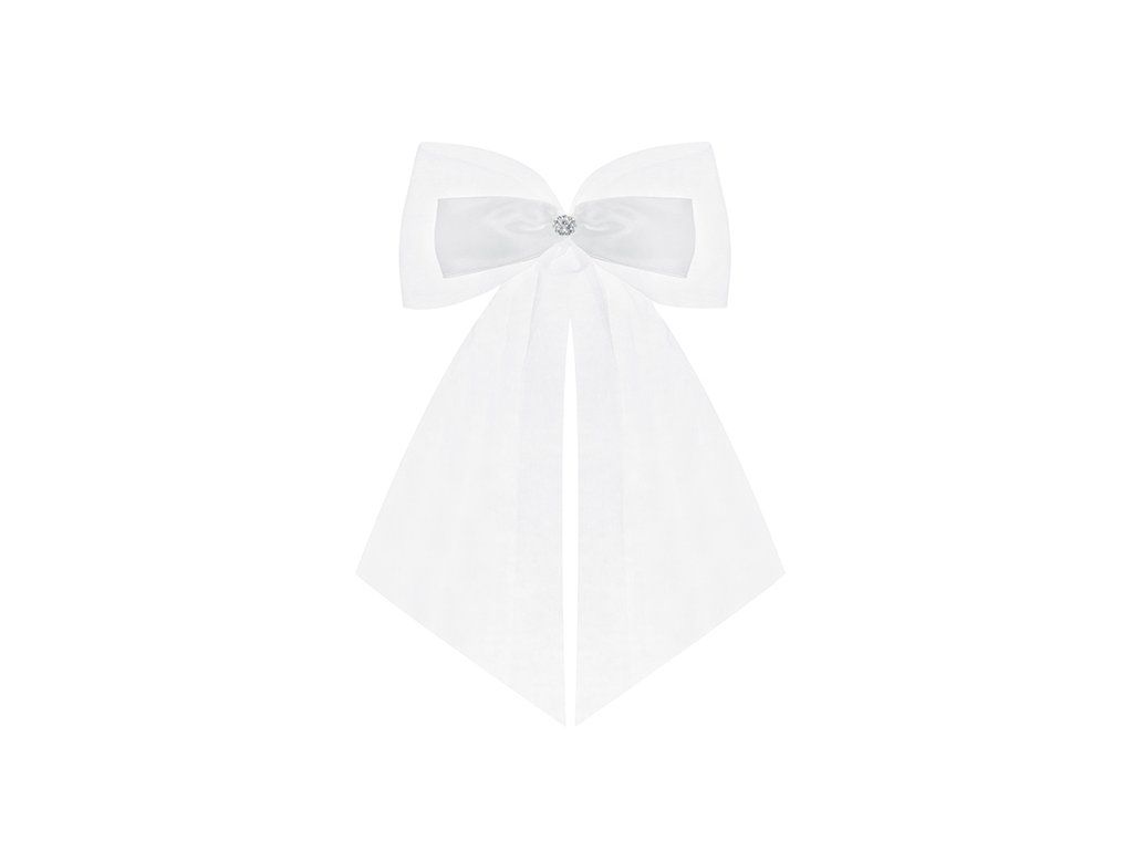Mašle na kliky z organzy a saténové stuhy se stříbrnou broží. Rozměr cca 14 cm.Doplňkové parametry