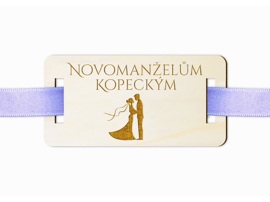 Cedulka je vyrobena z kvalitní topolové překližky s jemnou kresbou dřeva. Text i silueta novomanželů jsou pečlivě vypálené, takže působí elegantně a přirozeně. Průřezy po stranách umožňují snadné provlečení stuhy a pevné uchycení na dárku.