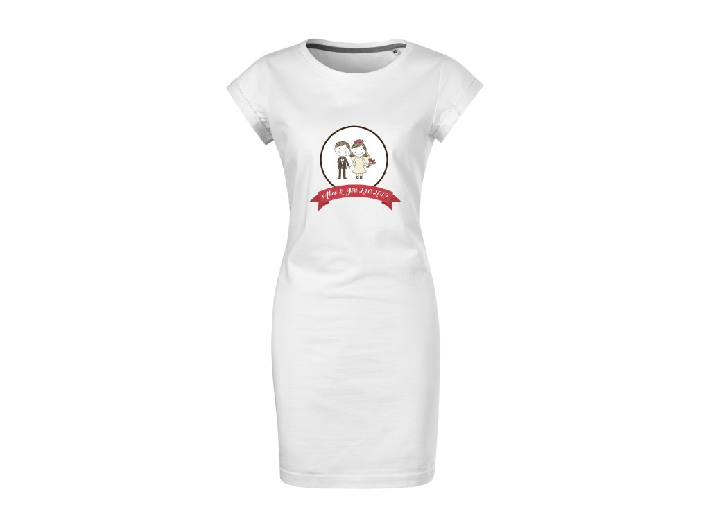Dámské tričkové šaty – Svatební pár v kruhu s personalizací