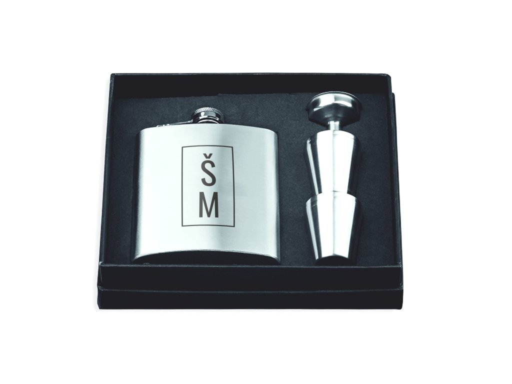 Tato dárková sada s placatkou v elegantním minimalistickém stylu je skvělou volbou jako dárek pro svědka nebo ženicha. Monogramové provedení působí moderně, čistě a nadčasově, díky čemuž se sada stává nejen praktickým doplňkem, ale i stylovou památkou na svatební den.