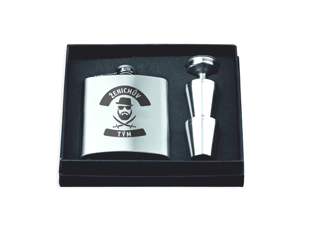 Tato dárková sada s motivem „Ženichův tým“ je ideálním dárkem pro svědky, kamarády a parťáky, kteří tvoří ženichovu nejbližší partu. Stylový design a kvalitní provedení z ní dělají nejen praktický doplněk, ale i památku na nezapomenutelné společné chvíle.