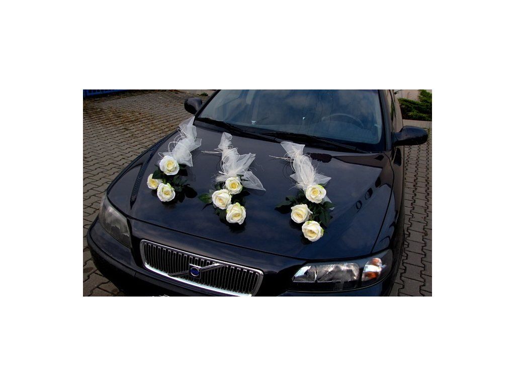 Sada obsahuje: 3 kytice na přední kapotu 4 ks dekorace na kliky Růže vypadají jako živé.