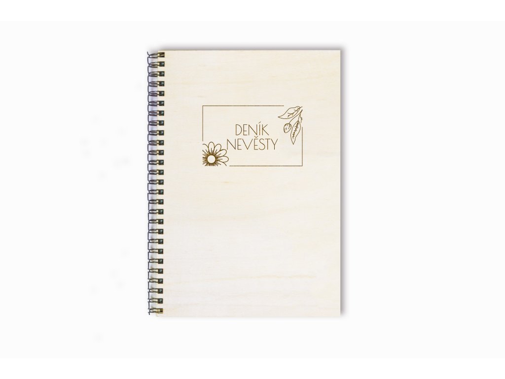 Dřevěný deník „Deník nevěsty“ s jemným květinovým rámem je nádherným místem, kam si můžete zapisovat své svatební plány, nápady, emoce i vzpomínky na cestu k velkému dni. Působí elegantně, minimalisticky a nadčasově a stane se osobní památkou, ke které se budete po letech rádi vracet.