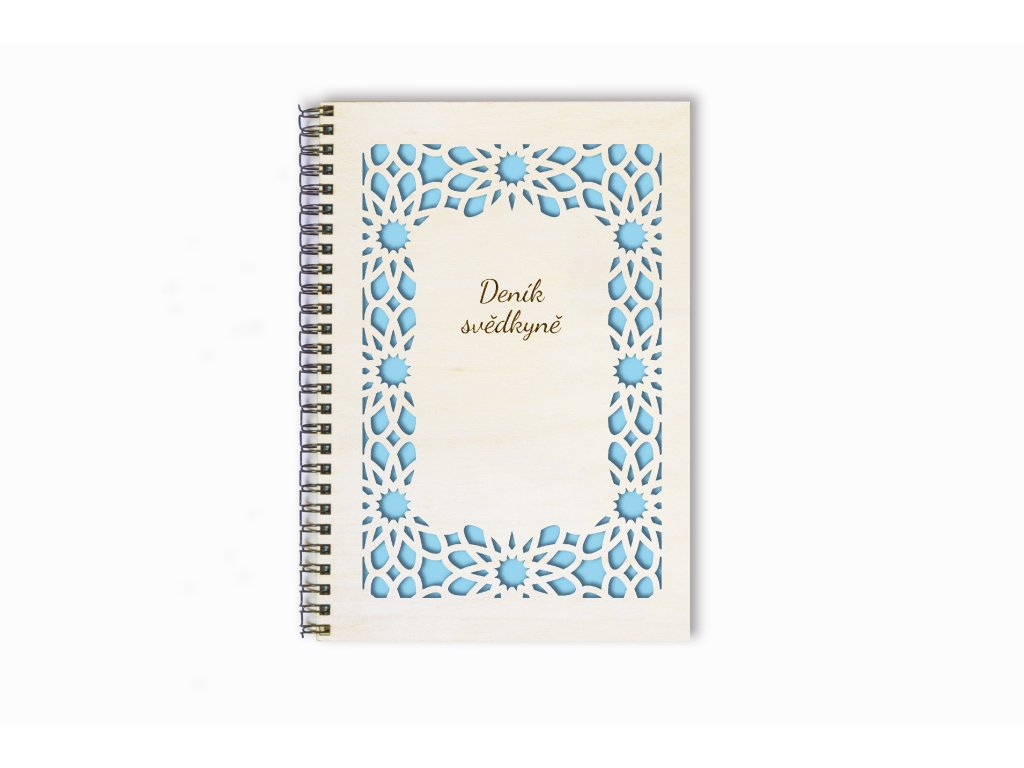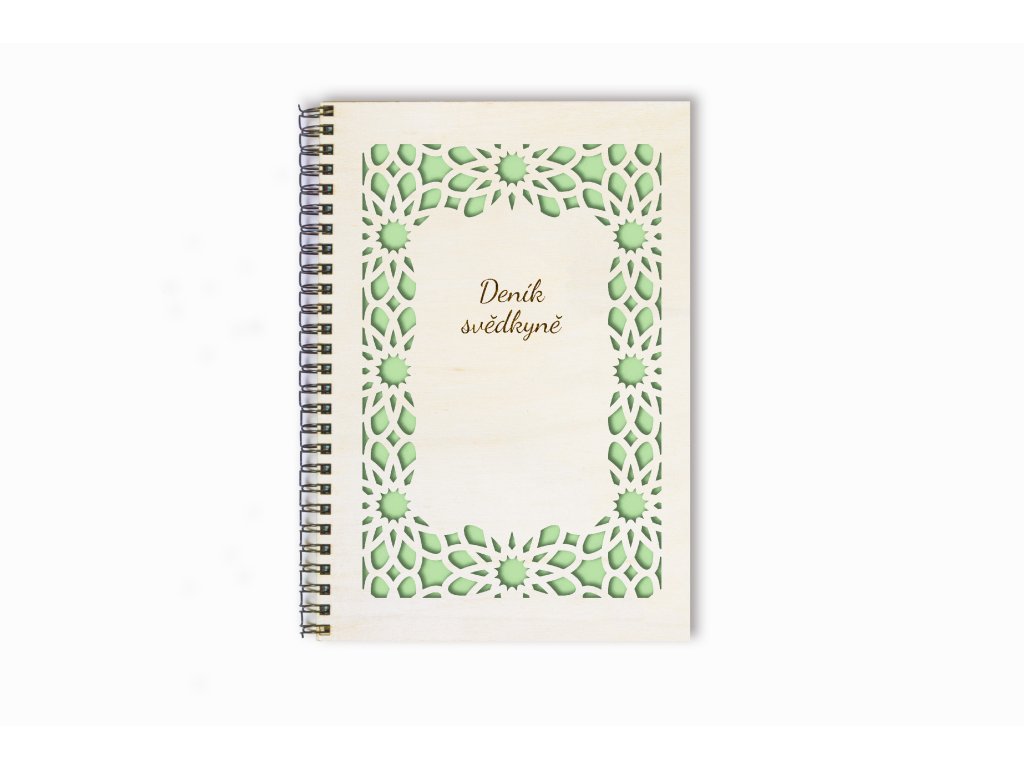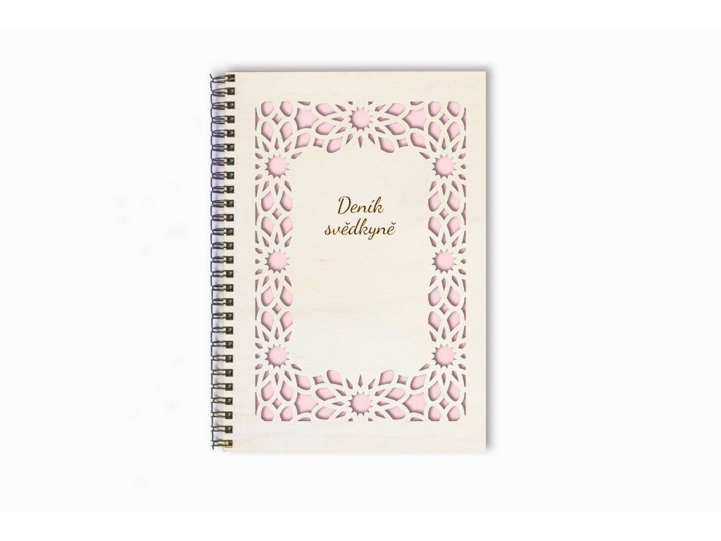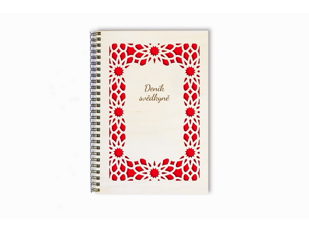 Deník svědkyně – dřevěný zápisník A5 s ornamentálním rámem