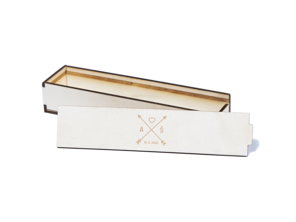 Krabičku upravíme přesně podle vašeho přání – doplníme iniciály novomanželů, datum svatby nebo krátký symbol či text. Každý kus tak vzniká jako originál na míru konkrétnímu páru a jejich velkému dni.