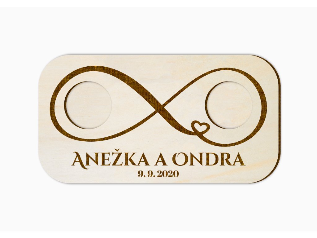 Tato dřevěná podložka pod prstýnky s motivem nekonečna je krásným symbolem lásky bez konce. Dodá svatebnímu obřadu jemný, osobní detail a zároveň vytvoří vzpomínku, která vám zůstane navždy.