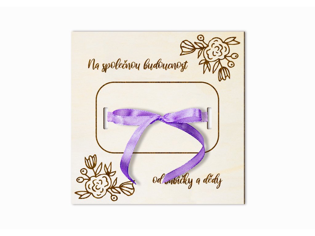 Tato dřevěná obálka na peníze je ideální volbou pro svatební dar, který má symboliku i emoce. Text „Na společnou budoucnost“ krásně vyjadřuje přání šťastné společné cesty a nových začátků.