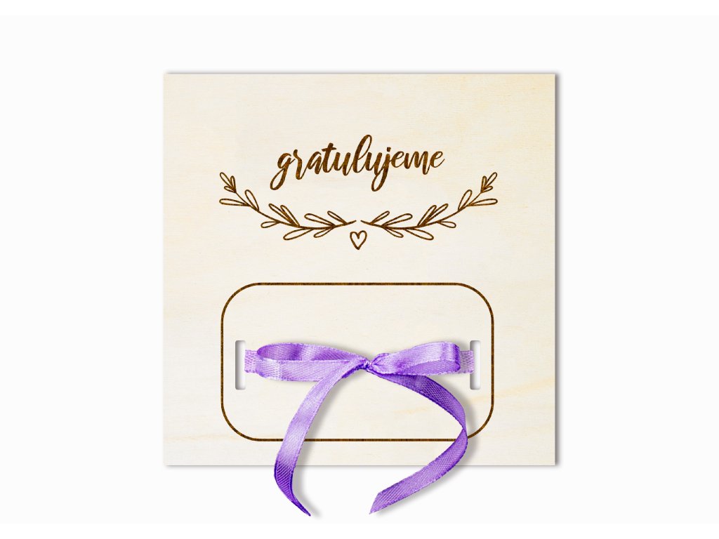 Hledáte vkusný způsob, jak darovat peníze novomanželům? Tato dřevěná obálka s jemným nápisem „Gratulujeme“ je elegantní alternativou ke klasické papírové obálce a stane se i krásnou památkou na svatební den.