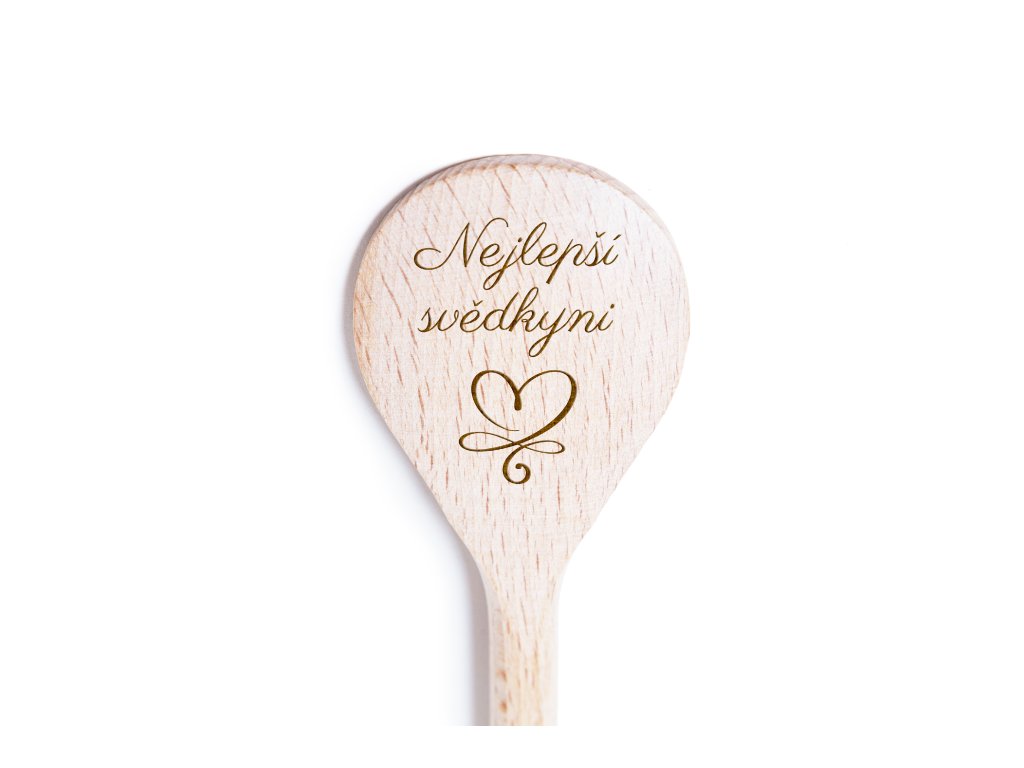 Vařečka je doplněna jemným gravírováním s nápisem „Nejlepší svědkyni“ a srdcem. Na přání lze motiv doplnit také o jméno nebo datum svatby.