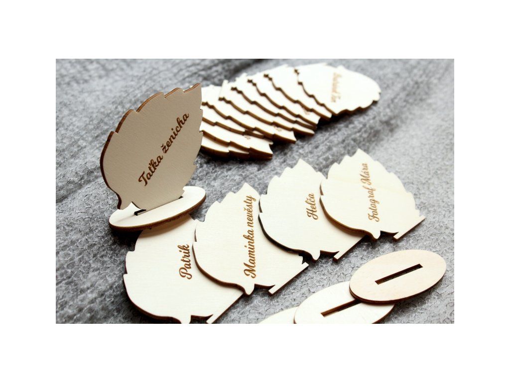 Doplňte svatební tabuli dřevěnými jmenovkami svatebčanů. Poctivá česká výroba.