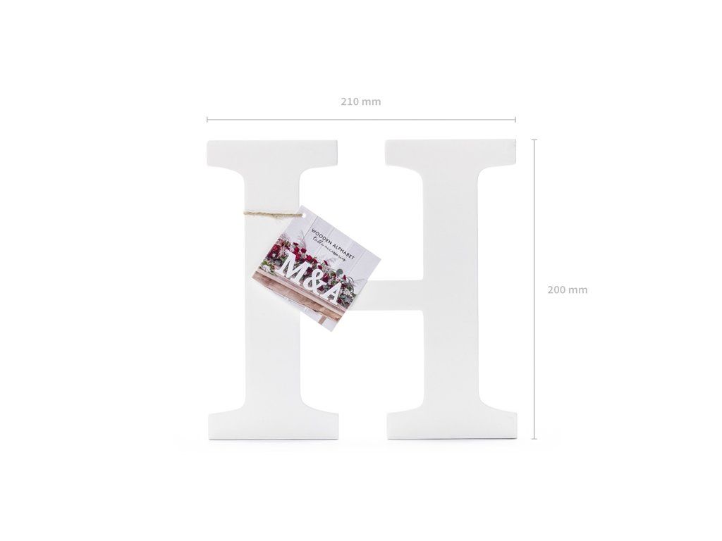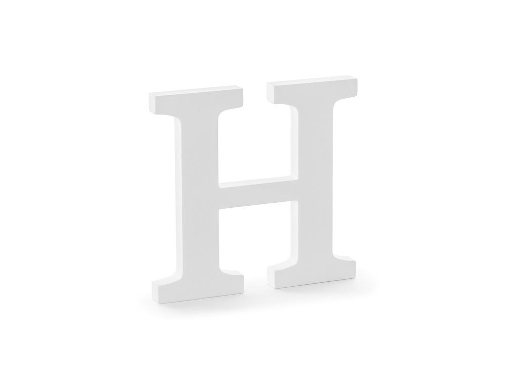 Dřevěné písmeno H bílé barvy, šířka cca 21 cm, výška cca 20 cm.
