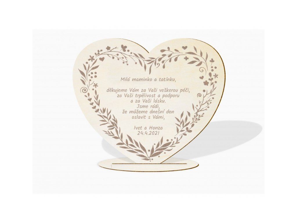 Poděkujte rodičům za vše, co pro Vás udělali originálním způsobem! Krásné gravírované srdce je jistě potěší a zůstane jim jako krásná památka.