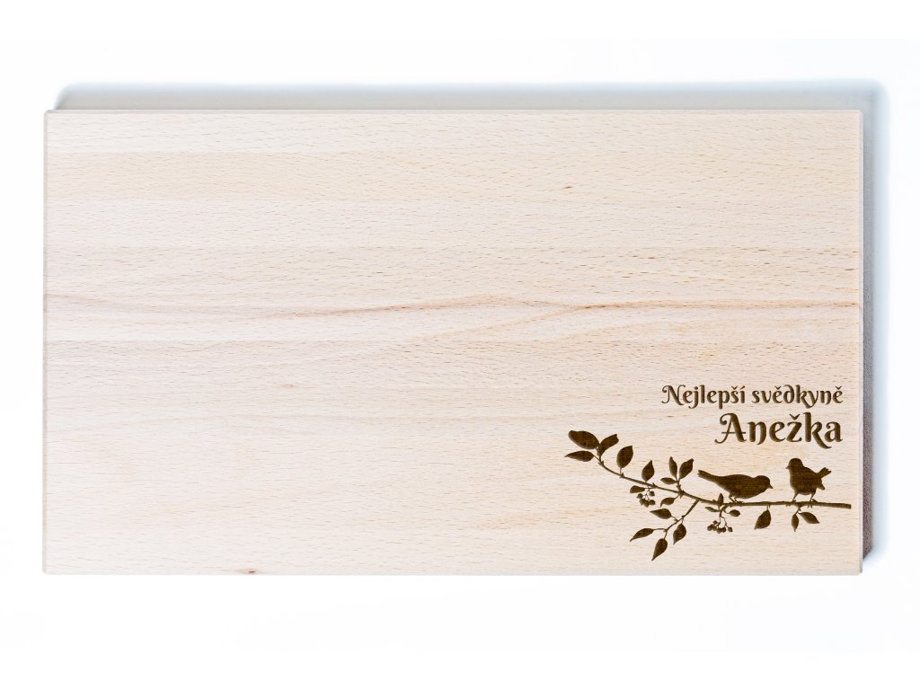 Prkénko lze doplnit o jméno svědkyně, díky čemuž vznikne jedinečný a osobní dárek. Každý kus vyrábíme na míru podle zadaných údajů, aby byl výsledek přesně podle vašich představ.
