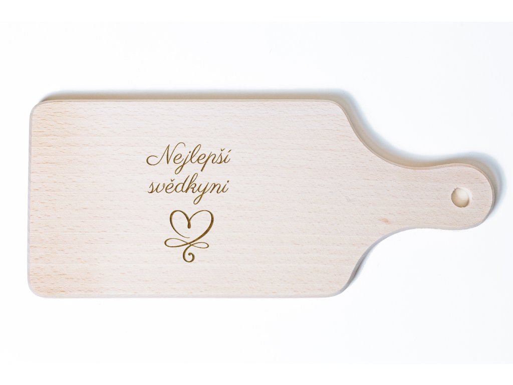 Toto dřevěné prkénko pro svědkyni je originálním způsobem, jak poděkovat za podporu, pomoc a přátelství během svatebních příprav. Jemné gravírování s nápisem „Nejlepší svědkyni“ udělá z obyčejného prkénka krásnou osobní památku.