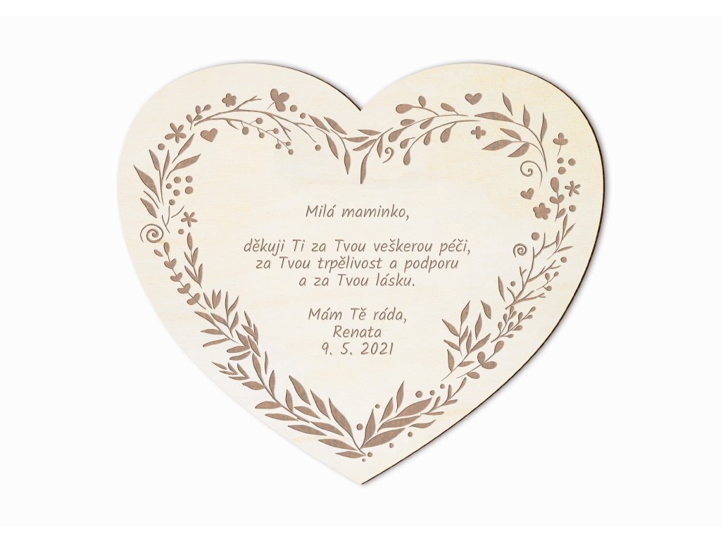 Text na srdci upravíme přesně podle vašeho přání – můžete doplnit jméno maminky, tatínka nebo obou rodičů, osobní vzkaz, datum nebo krátké poděkování. Každý kus tak vznikne jako jedinečná památka na celý život.