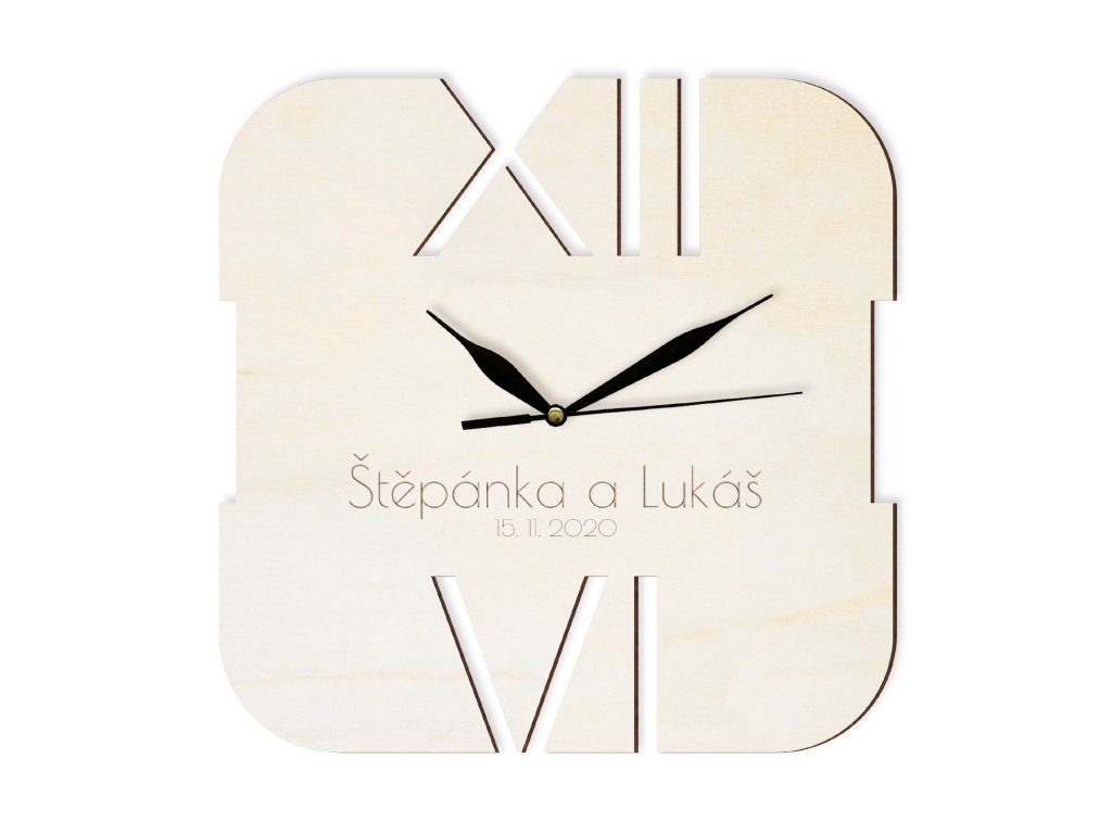 Hodiny lze doplnit jmény novomanželů a datem svatby, případně krátkým osobním textem. Díky personalizaci vzniká jedinečná památka, která bude připomínat výjimečný den po mnoho let.
