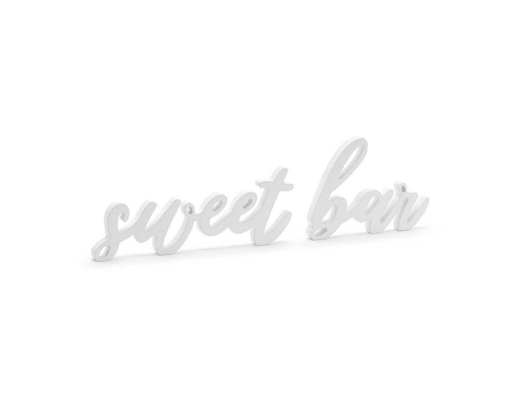 Dřevěný nápis sweet bar krásně přehledně označí stoly se sladkým barem.