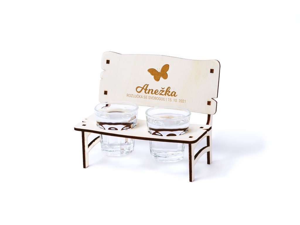 Tento dřevěný stojánek na panáky je oblíbeným doplňkem na svatbách, rozlučkách se svobodou i rodinných oslavách. Působí hravě, elegantně a zároveň osobně díky možnosti doplnění vlastního textu.