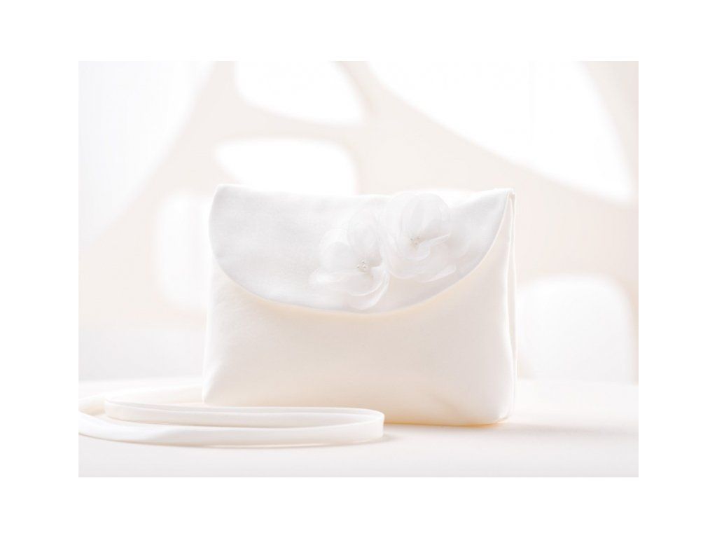 Krásná malá kabelka obdélníkového tvaru jako skvělý doplněk svatebních šatů.