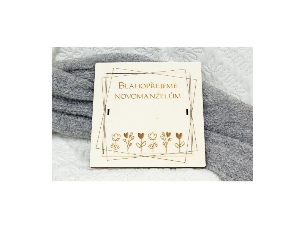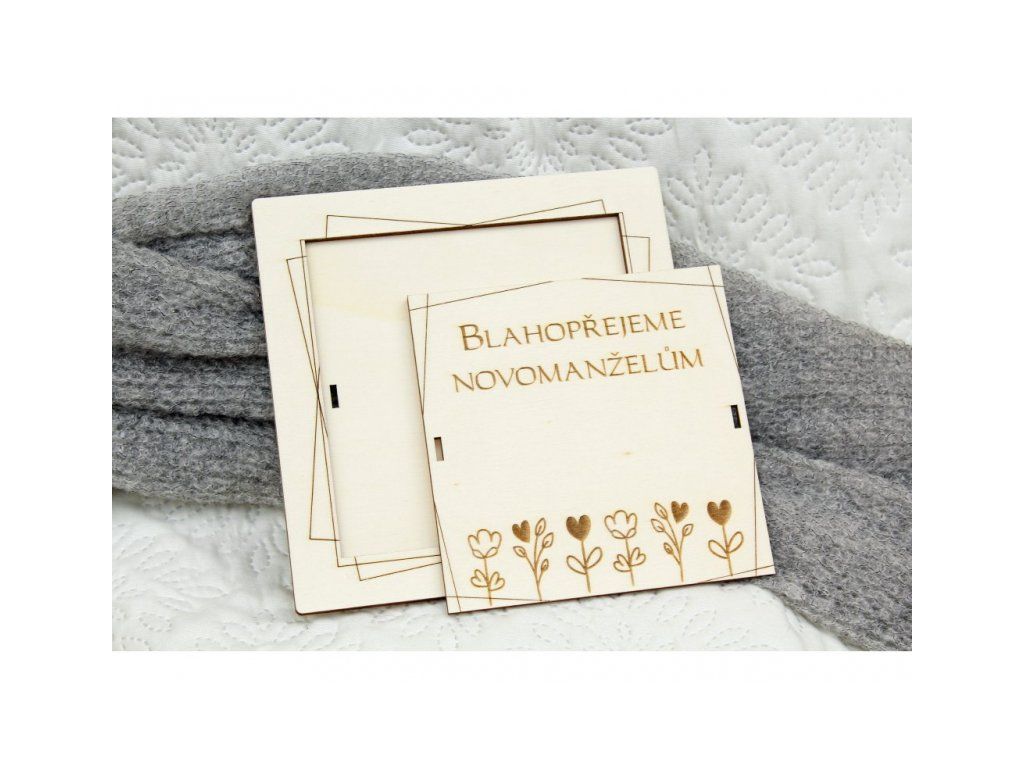 Luxusní "obálka" pro novomanžele nebo oslavence umožňuje darovat peníze originální cestou. Bankovky se umístí pod středový odnímatelný kryt, který se pak zaváže stužkou.