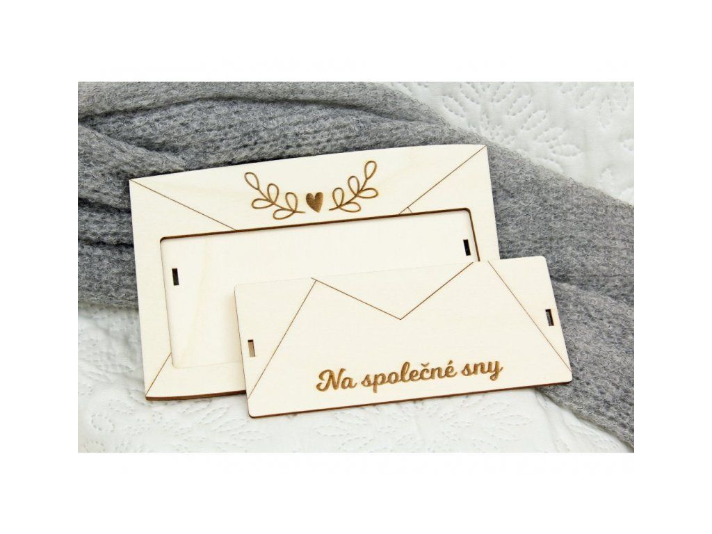 Luxusní "obálka" pro novomanžele nebo oslavence umožňuje darovat peníze originální cestou. Bankovky se umístí pod středový odnímatelný kryt, který se pak zaváže stužkou.
