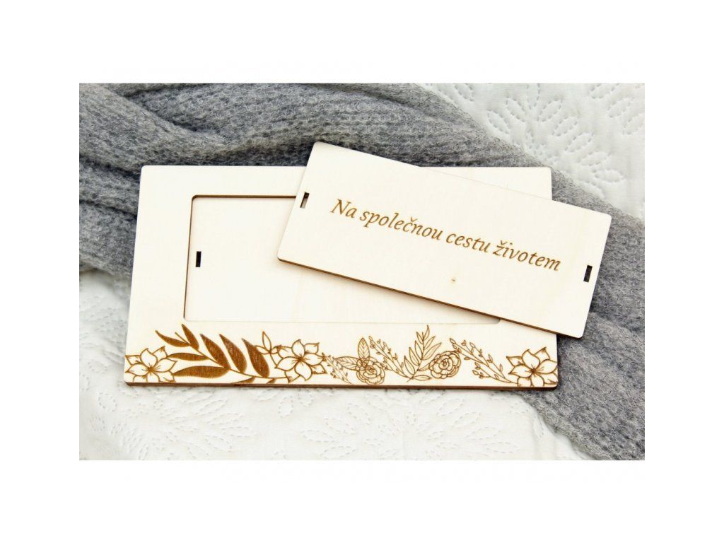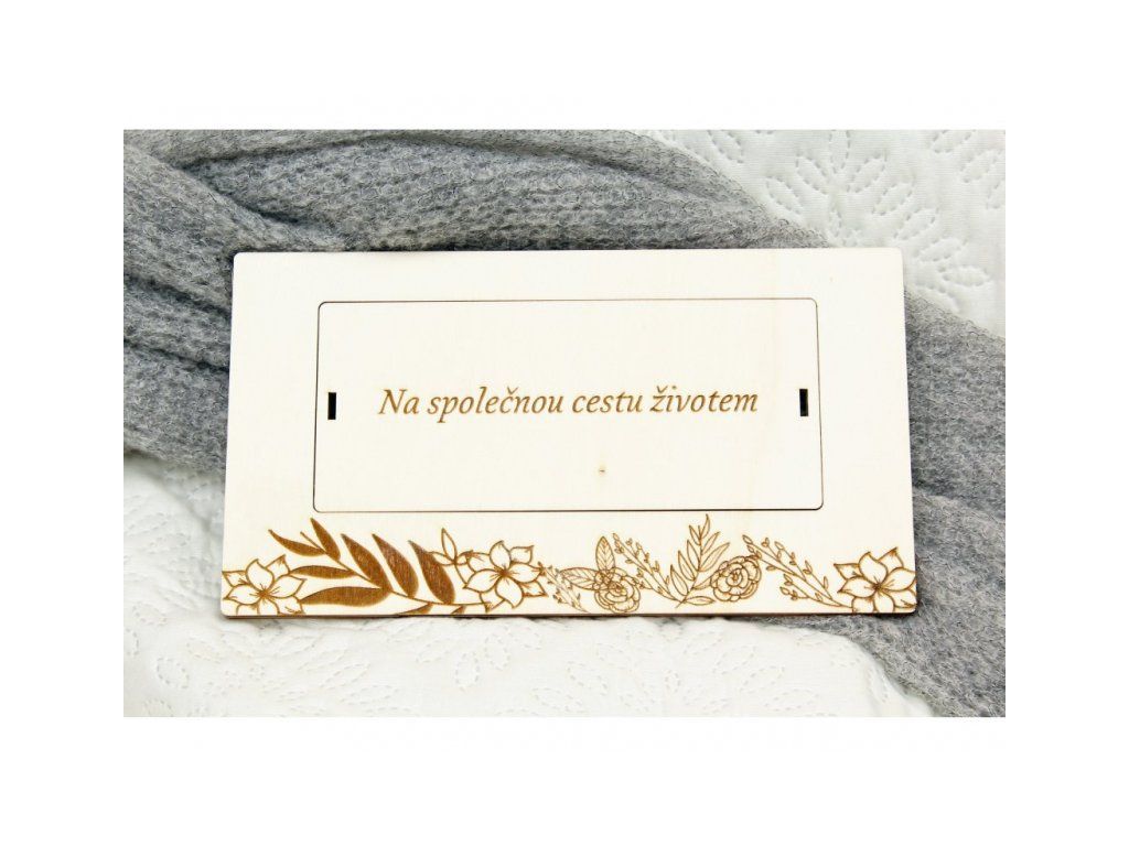 Luxusní "obálka" pro novomanžele nebo oslavence umožňuje darovat peníze originální cestou. Bankovky se umístí pod středový odnímatelný kryt, který se pak zaváže stužkou.