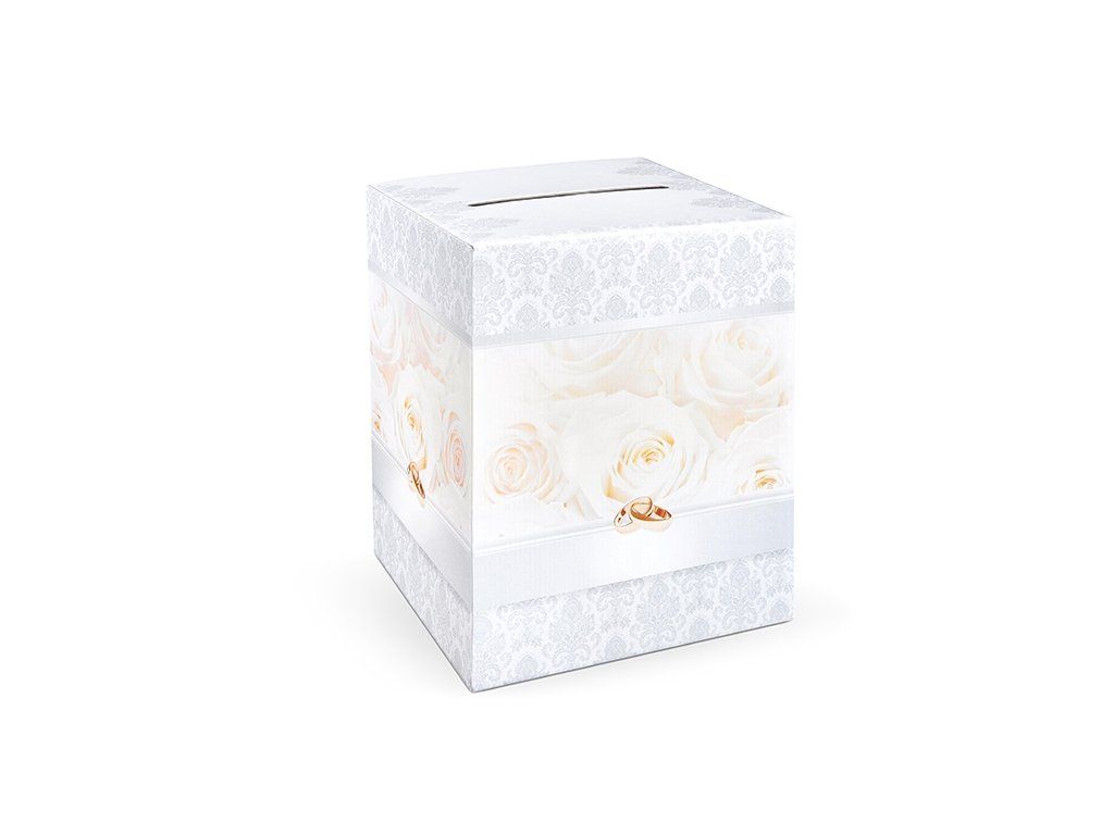 Krabička na přání se stříbrnými ornamenty a růžemi. Velikost 25 x 25 x 30 cm.Doplňkové parametry