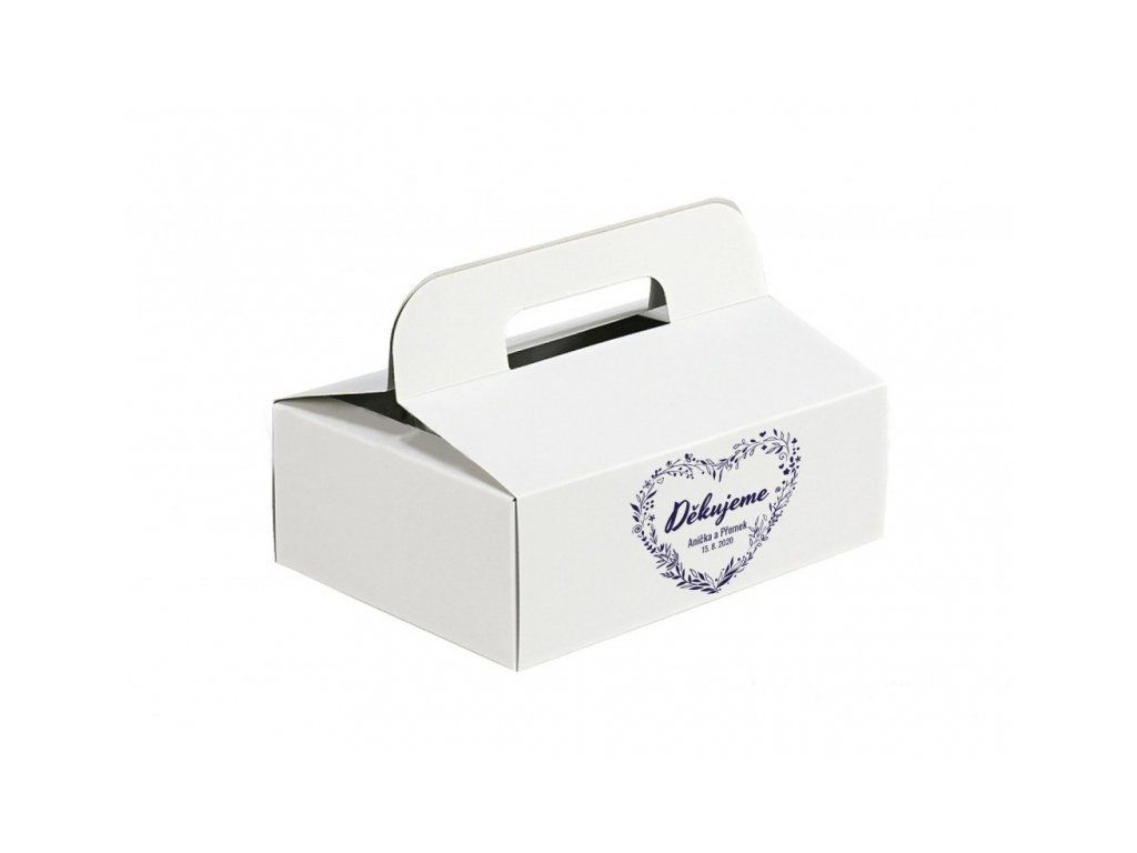 Velmi kvalitní stabilní krabička na zákusky s uchem, pevná. Boční zarážky na oušku zabraňují otevírání krabičky. Vyrobena z kvalitní velmi pevné bílo-šedé papírové strojní lepenky. Výška i s ouškem 12,5cm. Dodáváme v rozloženém stavu.Buďte první, kdo napíše příspěvek k této položce.