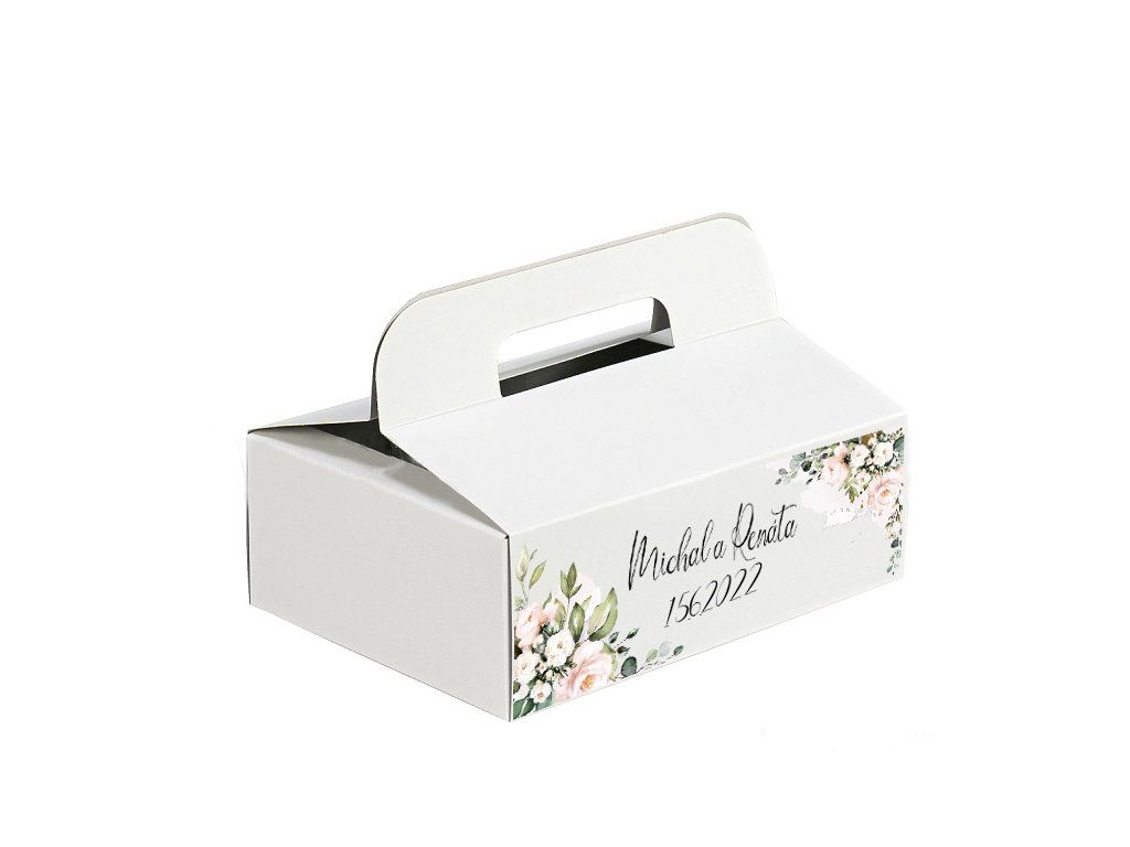 Velmi kvalitní stabilní krabička na zákusky s uchem, pevná. Boční zarážky na oušku zabraňují otevírání krabičky. Vyrobena z kvalitní velmi pevné bílo-šedé papírové strojní lepenky. Výška i s ouškem 12,5cm. Dodáváme v rozloženém stavu.Buďte první, kdo napíše příspěvek k této položce.