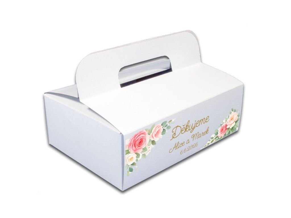 Velmi kvalitní stabilní krabička na zákusky s uchem, pevná. Boční zarážky na oušku zabraňují otevírání krabičky. Vyrobena z kvalitní velmi pevné bílo-šedé papírové strojní lepenky. Výška i s ouškem 12,5cm. Dodáváme v rozloženém stavu.Buďte první, kdo napíše příspěvek k této položce.
