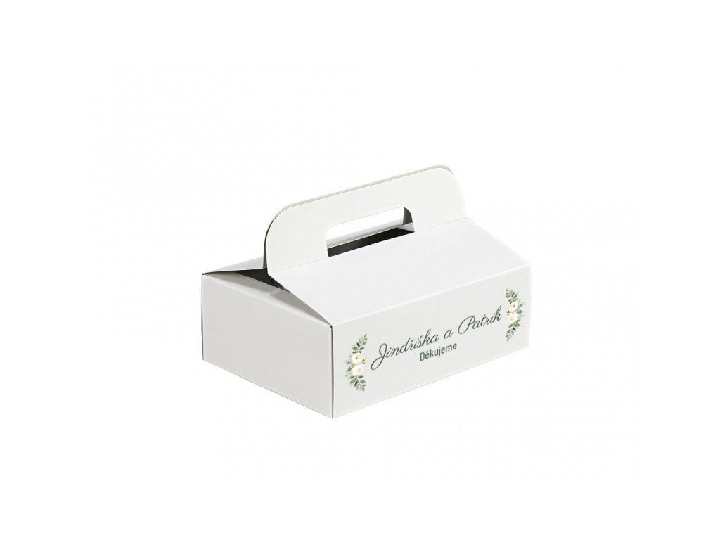 Velmi kvalitní stabilní krabička na zákusky s uchem, pevná. Boční zarážky na oušku zabraňují otevírání krabičky. Vyrobena z kvalitní velmi pevné bílo-šedé papírové strojní lepenky. Výška i s ouškem 12,5cm. Dodáváme v rozloženém stavu.Buďte první, kdo napíše příspěvek k této položce.