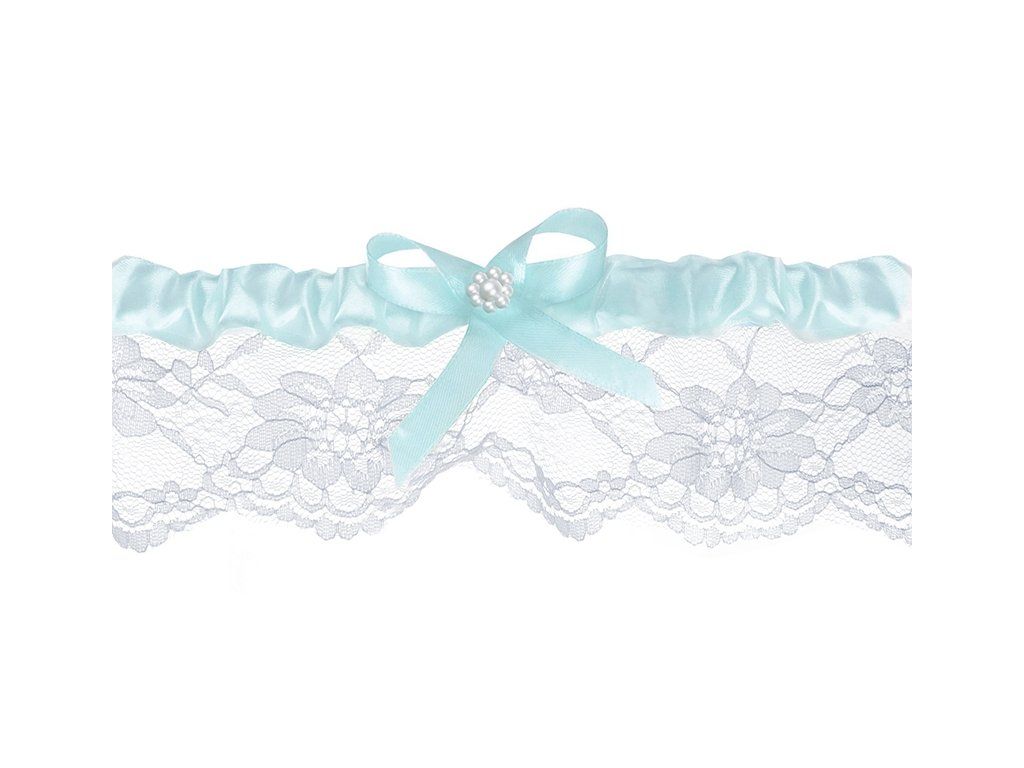 Bílý krajkový podvazek se světle modrou stuhou. Šířka cca 5,8 cm.Doplňkové parametry
