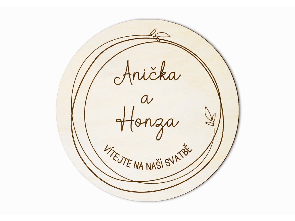 Kulatá svatební uvítací cedule je krásným prvkem, který upoutá pozornost hned při příchodu hostů. Skvěle se hodí k umístění ke vstupu na obřad, před místo hostiny nebo jako součást svatební výzdoby. Po svatbě ji můžete využít jako dekoraci do interiéru či vzpomínku na váš velký den.