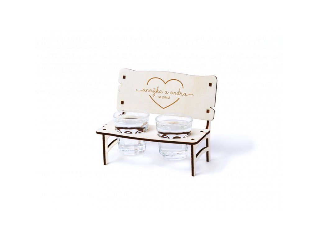 Dřevěná lavička s gravírováním je originálním dárkem pro novomanžele k jejich svatbě. Hodí se skvěle na svatební přípitky.