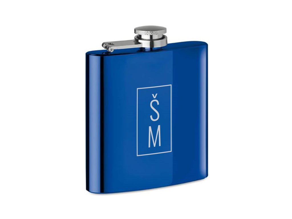 Personalizovaná modrá placatka s monogramem – svatební edice
