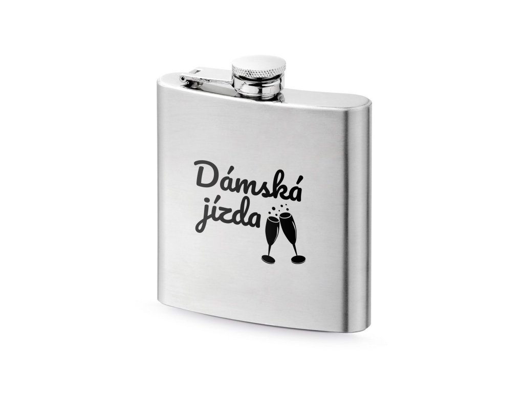 Stylová nerezová placatka s nápisem „Dámská jízda“ a motivem cinkajících skleniček je ideálním doplňkem na rozlučku se svobodou, holčičí večírek nebo víkendový pobyt s kamarádkami. Vtipný a elegantní design podtrhne slavnostní náladu a dodá každé oslavě ještě více radosti.