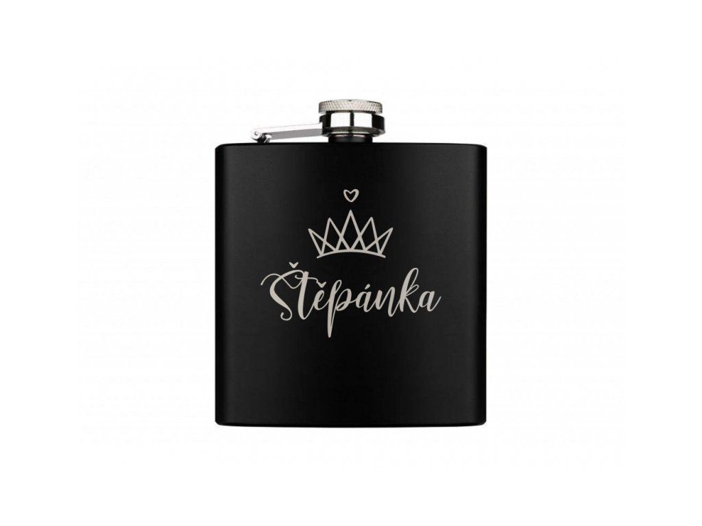 Originální černá placatka s gravírováním korunky a jména podle Vašeho přání.