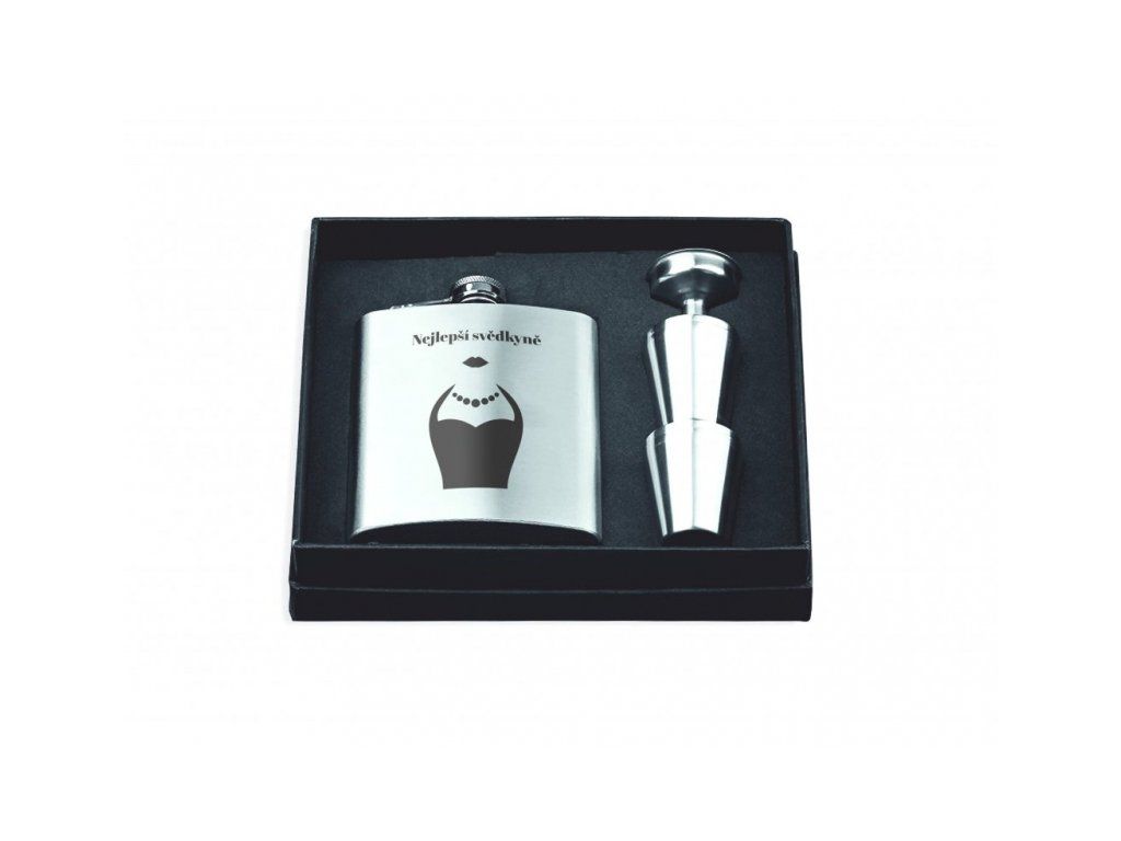 Souprava nerezové placatky, nálevky a pohárků v dárkové krabičce je skvělým dárkem pro svědkyně.