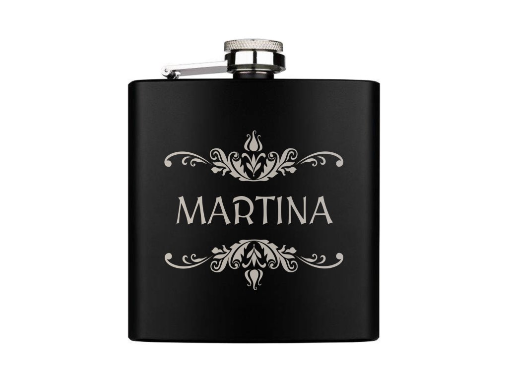 Elegantní černá placatka s gravírovaným jménem a jemným ornamentálním motivem je stylovým a osobním dárkem pro svědkyni, družičku nebo nevěstu. Luxusní vzhled a precizní zpracování z ní dělají krásnou památku na svatební den, která potěší při každém doušku.