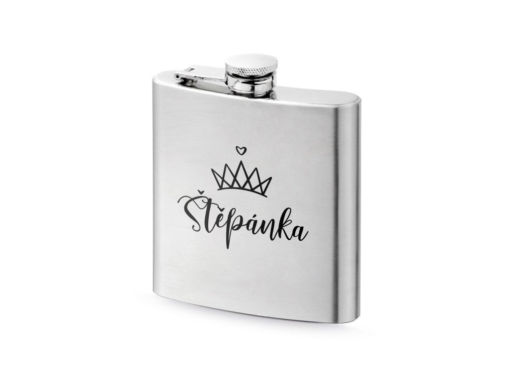 Elegantní nerezová placatka se jménem a motivem koruny je krásným a osobním doplňkem pro nevěstu, svědkyni i družičky. Skvěle se hodí na rozlučku se svobodou, svatební den nebo jako originální památka na výjimečný okamžik plný emocí.