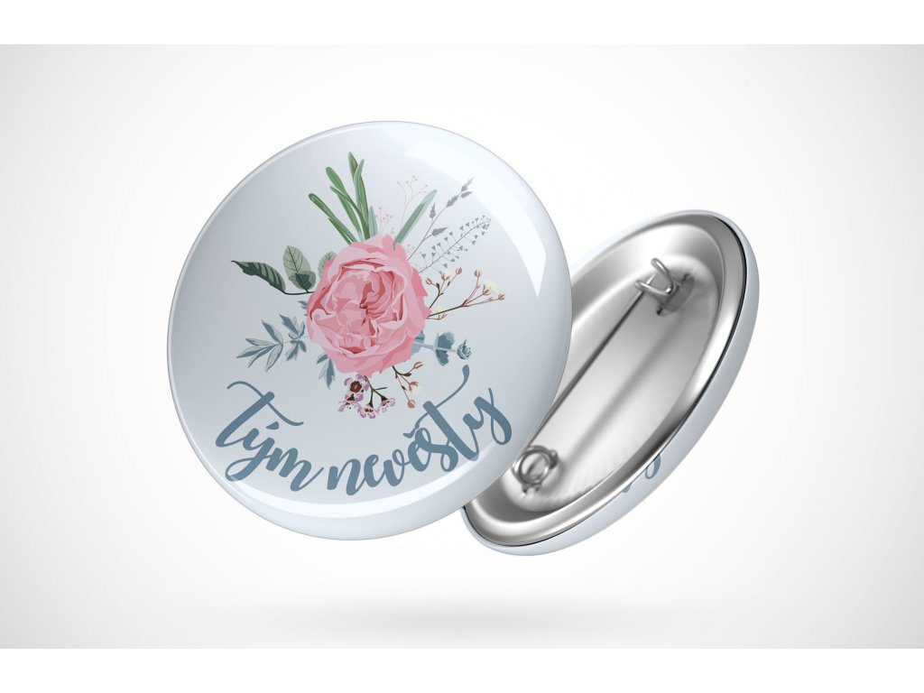 Světlý podklad je doplněn něžnou růží a jemnými botanickými prvky, které vytváří harmonický a velmi vkusný celek. Ručně působící typografie nápisu „Tým nevěsty“ dodává placke osobitý a moderní vzhled. Lesklý povrch zvýrazňuje barvy i jemné detaily potisku.