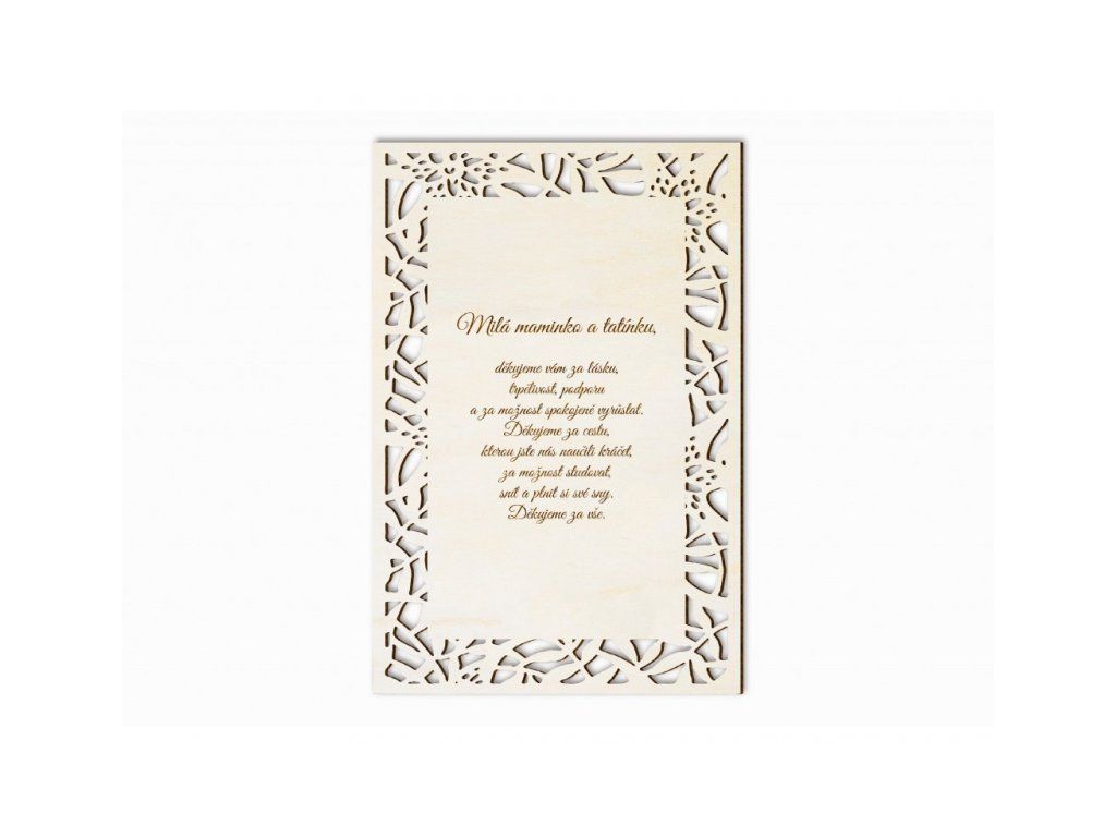 Poděkujte rodičům za vše, co pro Vás udělali originálním způsobem! Krásné gravírované poděkování jistě potěší a zůstane jim jako krásná památka.