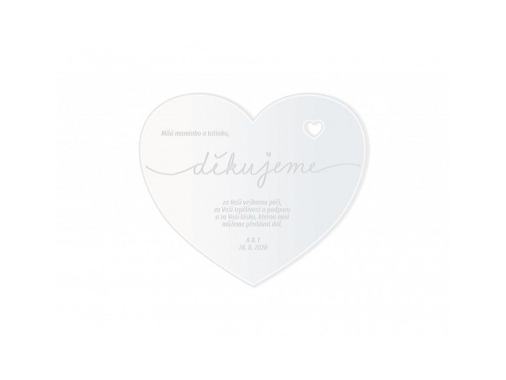 Poděkujte rodičům za vše, co pro Vás udělali originálním způsobem! Krásné gravírované srdce na plexiskle je jistě potěší a zůstane jim jako krásná památka.