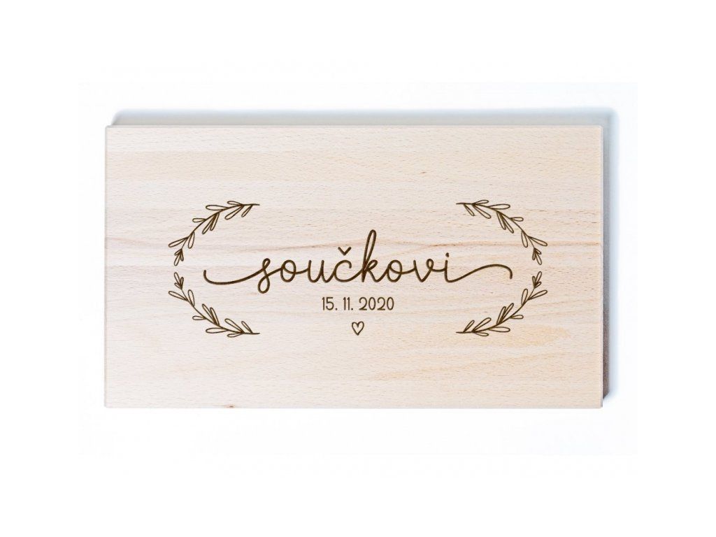 Originální dárek pro novomanžele s jejich jmény a datem svatby, který jistě potěší a zároveň je i praktický.
