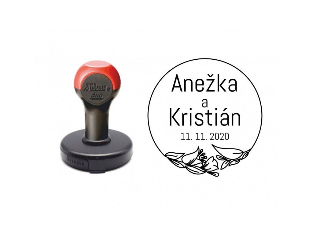 Svatební razítko vám poslouží na ozdobu svatebních obálek, svatebních jmenovek nebo je vhodné i na svatební krabičky. Průměr razítka je 37mm.