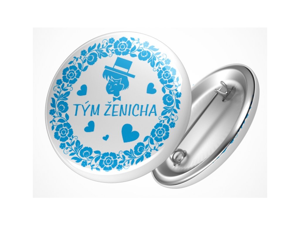 Rozlučková placka „Tým ženicha“ – modrý folklorní motiv