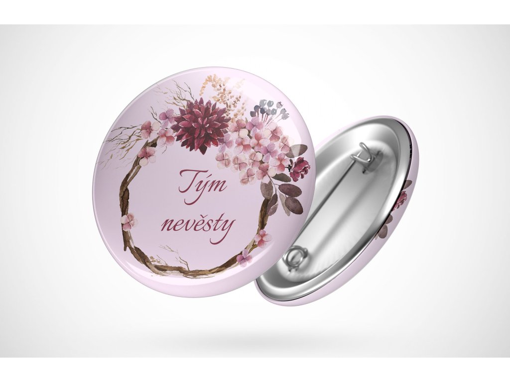 Tato rozlučková placka Tým nevěsty s květinovým věncem je jemným a stylovým detailem, který krásně doladí každou rozlučku se svobodou. Romantický motiv podtrhne slavnostní atmosféru a zároveň sjednotí celý tým nevěsty.