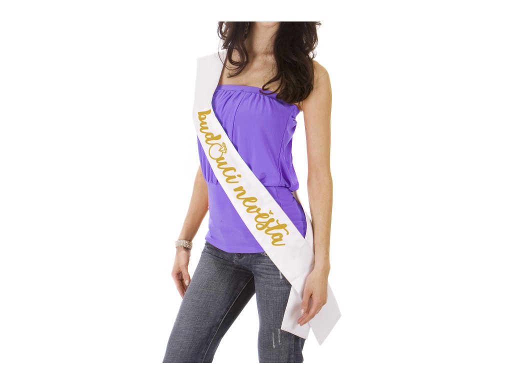 Rozlučková šerpa Budoucí nevěsta – bílá se zlatým nápisem