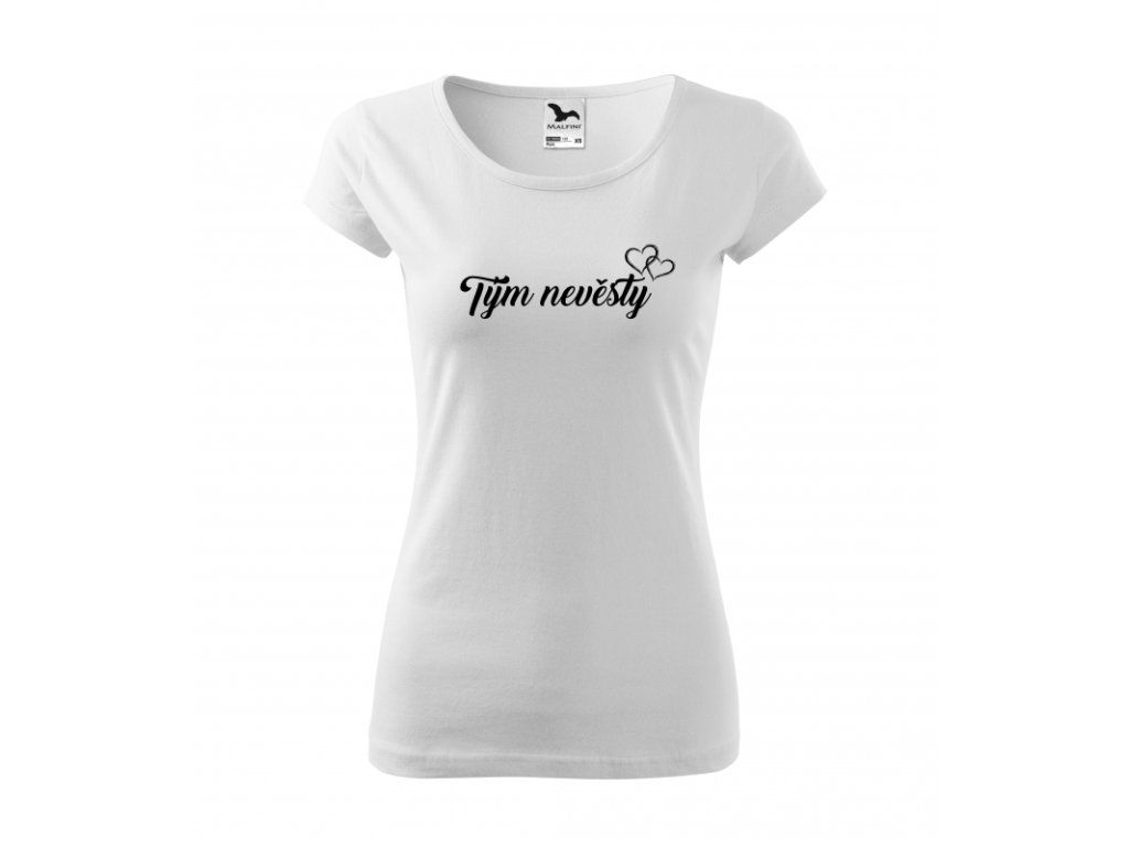 Tričko na dámskou rozlučku se srdcem. Text si můžete zvolit, nejčastěji je Nevěsta, tým nevěsty, svědkyně apod.